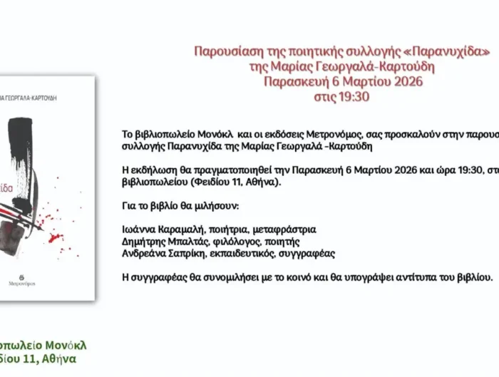 Παρουσίαση Παρανυχίδας της Μαρίας Γεωργαλά στο βιβλιοπωλείο Μονόκλ